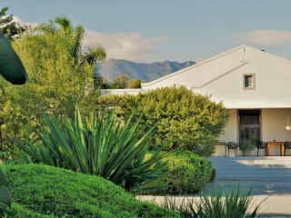 Swellendam Country Lodge is an officially accredited four-star guest house conveniently located just off the R60 road, a beautiful provincial route. The characteristic manor-style architecture dates back to the 1800s and still boasts with its distinctive historic splendour. This Swellendam accommodation, run by founders Jan and Vivianne Bruijn, offers 6 quality garden rooms decorated tastefully with minimalist country decor influences and situated in separate buildings amidst the garden. You can look forward to a cosy and hospitable setting surrounded by a beautifully lush and exotic garden full of fruit trees and various birdlife that will amaze you. The large swimming pool with a sundeck complete with loungers and umbrellas is perfect to catch up on some midday reading or just a late afternoon sunset session. Visitors can also try their hand at a boules game with the on-site court. Your stay at the Swellendam Country Lodge includes an exclusive breakfast made by their early morning chef with fresh ingredients straight from the garden. Think homemade compotes and jams will surely delight your taste buds. In summer, you can enjoy your breakfast outside on the veranda of the house overlooking the garden, while you can cosy up in front of the fireplace on colder mornings. Occasionally, Vivianne might even spoil you with freshly baked muffins or cookies to enjoy with your coffee. Swellendam Country Lodge was recently recognised by Tripadvisor as one of the top 10% hotels worldwide – so rest assured you’ll be in safe hands.