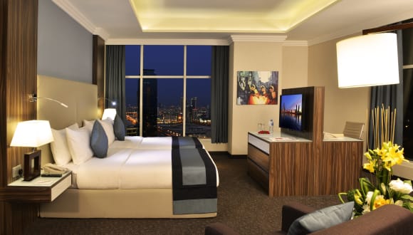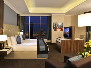 Die Zimmer sind mit Klimaanlage, Teppichböden, Queensize- oder Kingsize-Betten, einem Safe, einer Minibar und einem Schreibtisch ausgestattet. Zur weiteren Einrichtung gehören eine Tee-/Kaffeemaschine, ein Bügelset, ein Telefon und ein TV-Gerät mit Satelliten- und Kabelempfang. Jedes Zimmer hat ein Badezimmer mit Dusche und Haartrockner.