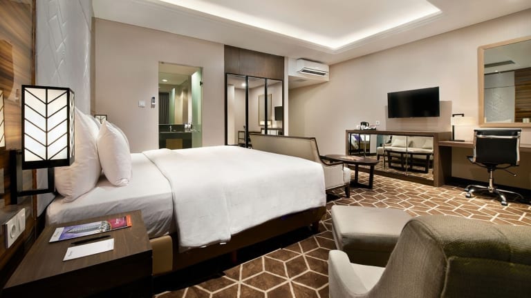 Das Swiss-Belinn Tunjungan Surabaya verfügt über 190 Zimmer, die modern und komfortabel eingerichtet sind. Jedes Zimmer ist mit einem Flachbild-TV, einer Minibar und einem eigenen Bad ausgestattet. Die Zimmer bieten auch WLAN-Zugang und eine Klimaanlage. Für zusätzlichen Komfort können die Gäste den 24-Stunden-Zimmerservice in Anspruch nehmen.