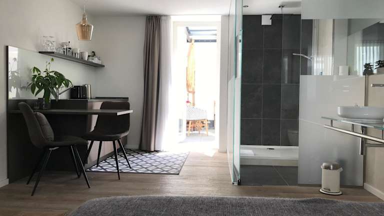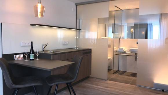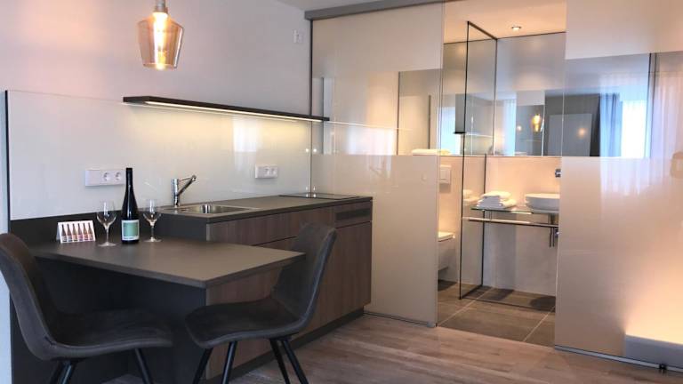 Die Wohneinheiten sind mit Parkettböden ausgestattet und verfügen über eine voll ausgestattete Küchenzeile, einen Essbereich und einen Flachbild-TV mit Satellitenkanälen. Ein eigenes Badezimmer mit Dusche und Haartrockner ist ebenfalls vorhanden.