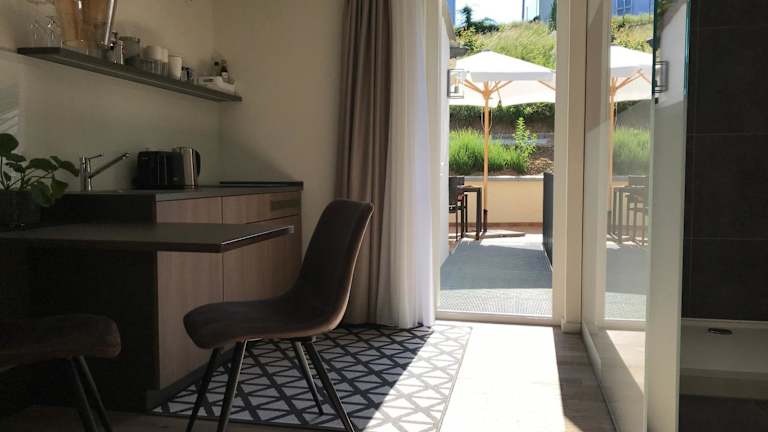 Gäste haben die Möglichkeit, ein kontinentales Frühstück zu genießen. Des Weiteren steht eine voll ausgestattete Küchenzeile in den Wohneinheiten zur Verfügung, die Herdplatte, Kühlschrank, Toaster, Kaffeemaschine und Wasserkocher umfasst.