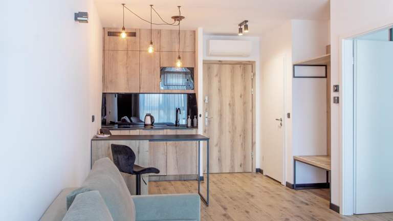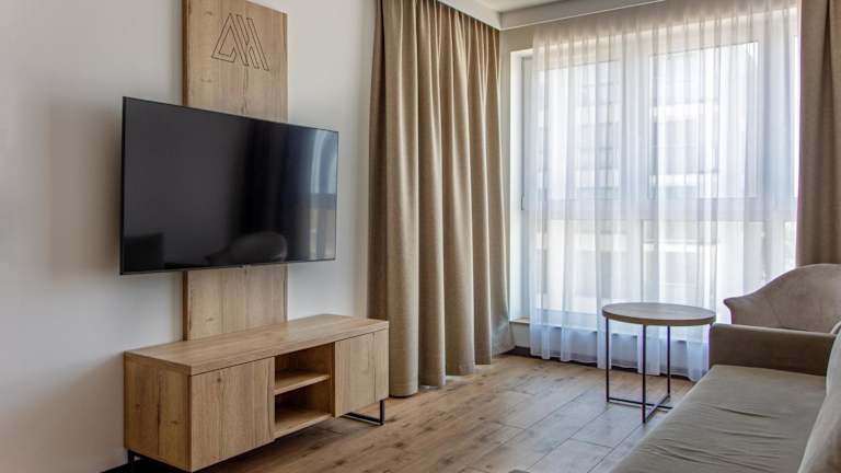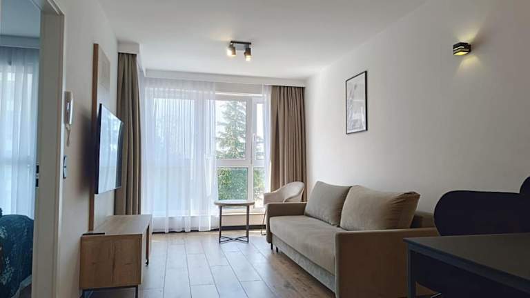 Die Ferienwohnung Szyndzielnia Hill apartament # nestapartamenty bietet ein einladendes Wohnzimmer mit Flachbild-TV sowie eine Terrasse mit Bergblick. Die Unterkunft ist klimatisiert und verfügt über einen kostenlosen Privatparkplatz.