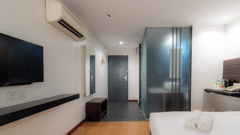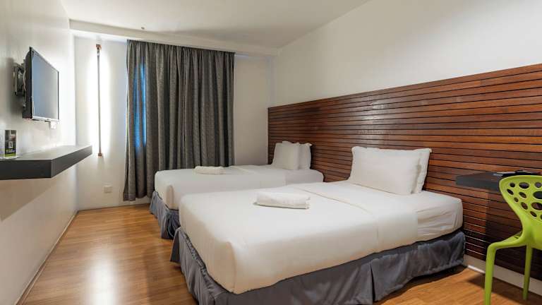 Die Zimmer im T+ Hotel sind modern und schön eingerichtet. Sie sind klimatisiert und verfügen über einen LCD-Sat-TV sowie eine moderne Dusche. Pflegeprodukte sind vorhanden.