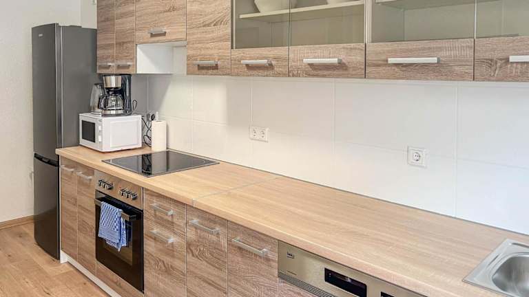 Das 3 Zimmer Apartment umfasst insgesamt drei Schlafzimmer, einen Flachbild-TV und eine gut ausgestattete Küche. Ein Badezimmer mit Dusche ist ebenfalls vorhanden.