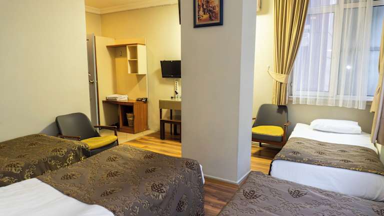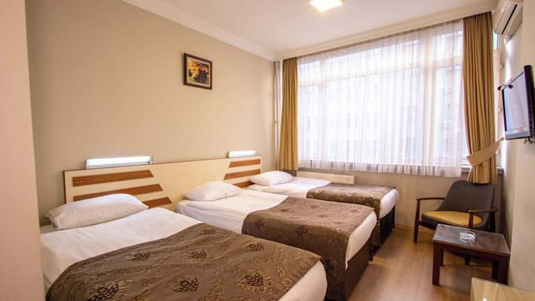 Die Zimmer im Tac Hotel sind im traditionellen Stil gestaltet und bieten eine gemütliche Atmosphäre. Jedes Zimmer ist klimatisiert und mit kostenfreiem WLAN, einem LCD-Sat-TV, einer Minibar und Kaffee- und Teezubehör ausgestattet. Das moderne Badezimmer verfügt über einen Haartrockner und eine Dusche. Die Bettwäsche und Tapeten verleihen den Zimmern einen traditionellen Charme.