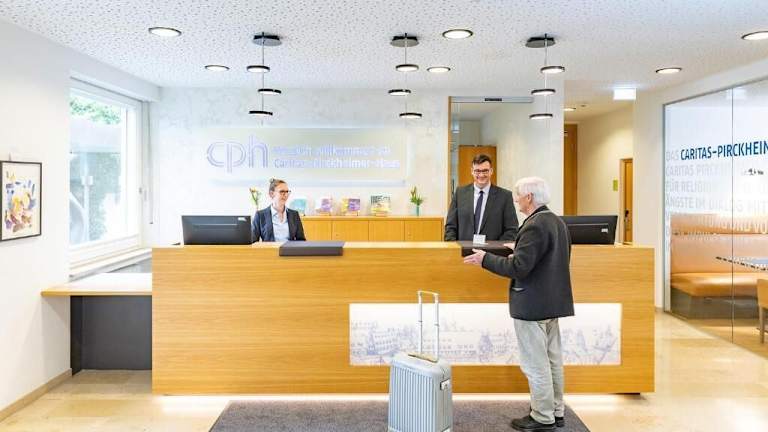 Das Caritas-Pirckheimer-Haus bietet klassisch eingerichtete Zimmer und verfügt über eine Terrasse.