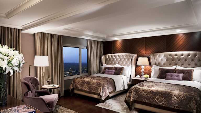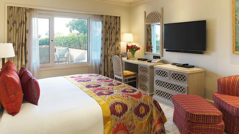 Das Taj Palace Hotel verfügt über 422 Zimmer und 40 Suiten, die auf 8 Etagen verteilt sind. Die Zimmer sind klimatisiert und bieten Annehmlichkeiten wie eine Minibar und einen Wasserkocher. Das eigene Bad ist mit einer Dusche, einer Badewanne und einem Haartrockner ausgestattet. Die Unterkunft bietet auch spezielle Privilegien für Gäste, die in den Taj Club Zimmern und Suiten übernachten, wie einen Butlerservice und exklusiven Zugang zur Taj Club Lounge.