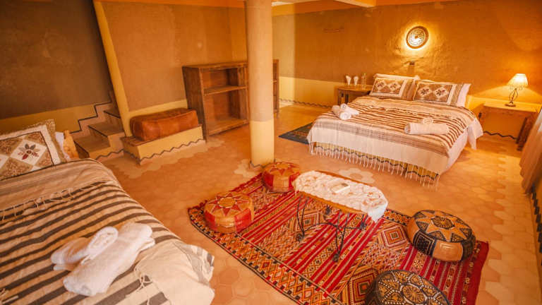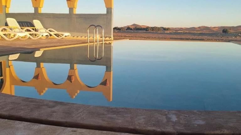 Das Takojt Hotel in Merzouga bietet seinen Gästen eine ideale Lage, um die Wunder der Wüste zu erkunden. Mit einem atemberaubenden Blick auf die Sanddünen und einem freundlichen und aufmerksamen Service ist dieses Hotel die perfekte Wahl für Reisende, die eine authentische marokkanische Erfahrung suchen. Genießen Sie die marokkanische Küche unter freiem Himmel und nehmen Sie an geführten Ausflügen teil, um die Oasen und die Wüste zu erkunden.
