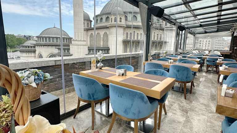 Das Hotel bietet ein reichhaltiges Frühstücksbuffet, das im Restaurant My Line auf der Terrasse serviert wird. Genießen Sie den Blick auf den Taksim-Platz und die Stadt, während Sie sich für den Tag stärken. Zum Abendessen können Sie Gerichte à la carte im Restaurant genießen.