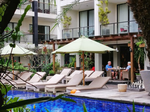 Das Taksu Hotel Sanur liegt in einer zentralen Lage in Sanur und ist nur wenige Gehminuten vom Mertasari Beach entfernt. Der Semawang Beach und der internationale Flughafen Ngurah Rai sind ebenfalls bequem zu erreichen. Die Umgebung bietet zahlreiche Möglichkeiten für Aktivitäten wie Radfahren und Wassersport.