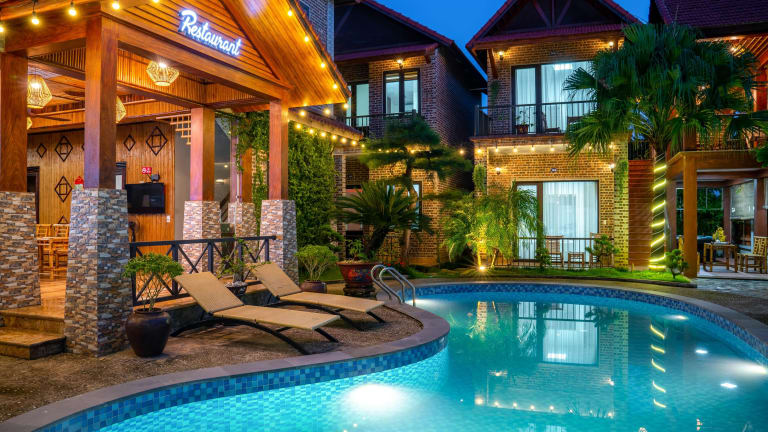 Das Hotel The Little Village in Ninh Bình bietet seinen Gästen eine komfortable Unterkunft mit einem Restaurant, einem Außenpool und kostenfreien Fahrrädern. Die Zimmer sind gut ausgestattet und verfügen über ein eigenes Bad. WLAN ist in allen Bereichen kostenlos verfügbar. Starten Sie Ihren Tag mit einem köstlichen kontinentalen oder asiatischen Frühstück. Entspannen Sie auf der Terrasse oder in der Gemeinschaftslounge. Nutzen Sie die Gelegenheit zum Angeln und Radfahren in der Umgebung. Die Kathedrale von Phat Diem und das Ninh Binh Stadium sind ebenfalls nicht weit entfernt. Der Flughafen Tho Xuan ist ca. 91 km entfernt, aber die Unterkunft bietet auch einen Flughafentransfer gegen Gebühr an.