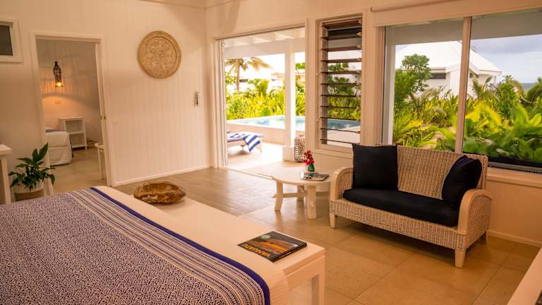 Die Villen sind luxuriös und klimatisiert, verfügen über eine eigene Terrasse mit Liegestühlen und Meerblick sowie über WLAN. Die Ausstattung umfasst einen Flachbild-Kabel-TV, einen Medienserver und eine iPod-Dockingstation. Einige Villen bieten zusätzlich ein eigenes Tauchbecken. Alle Unterkünfte sind mit Kingsplit-Betten ausgestattet.