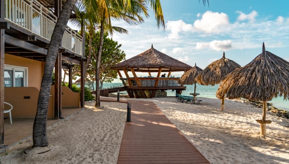 Die weitläufige All Inclusive Anlage liegt direkt an einem wunderbaren langen Sandstrand in einer schönen Gartenanlage. Alle Zimmer mit Balkon haben direkten Blick auf den Strand und Zimmer mit Terasse bieten direkten Zugang zum Strand. Alle Einrichtungen des benachbarten Divi Aruba All Inclusive können ebenfals mitbenutzt werden. Es stehen Ihnen 10 Restaurants und 8 Bars zur Verfügung, unzählige Sportarten und ein umfangreiches Entertainment-Programm.