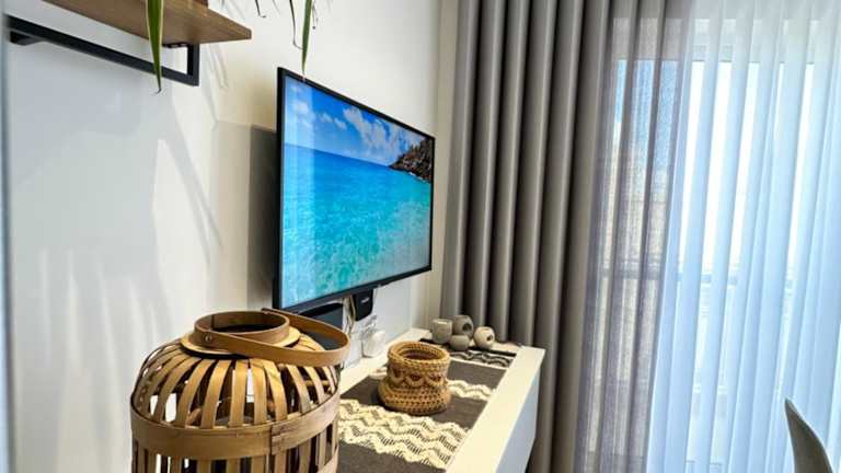 Die Ferienwohnung verfügt über 2 Schlafzimmer, eine voll ausgestattete Küche mit Kühlschrank und Geschirrspüler sowie 2 Badezimmer, die mit einer Dusche, einem Haartrockner und einer Waschmaschine ausgestattet sind. Handtücher und Bettwäsche werden bereitgestellt.