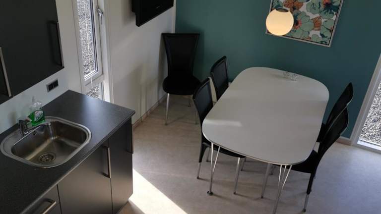 Im Tangsø Hytteby können Sie Ihre Mahlzeiten bequem in Ihrer eigenen voll ausgestatteten Küche zubereiten. Hier finden Sie einen Kühlschrank, einen Backofen, ein Kochfeld, einen Toaster, eine Kaffeemaschine und einen Wasserkocher. Wenn Sie jedoch keine Lust zum Kochen haben, können Sie auch in der Gemeinschaftslounge entspannen und dort eine Auswahl an Speisen und Getränken genießen.