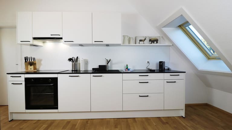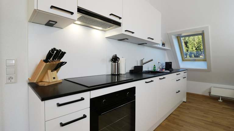 Die Ferienwohnung verfügt über eine Küchenzeile, die mit einem Kühlschrank ausgestattet ist. Ein Essbereich ist ebenso vorhanden. Handtücher und Bettwäsche sind in der Unterkunft bereitgestellt.