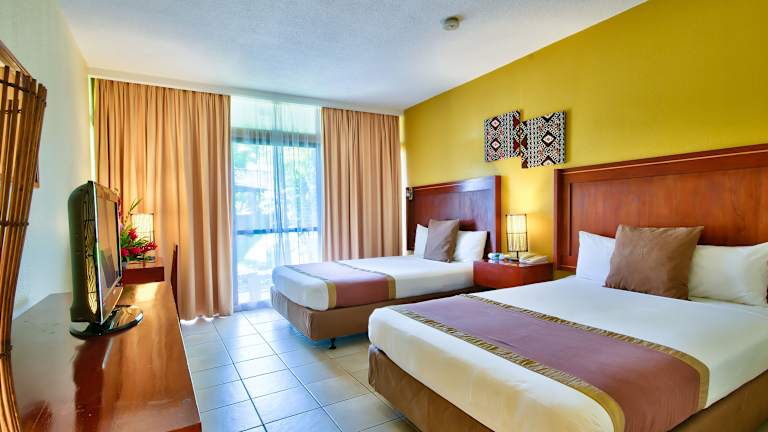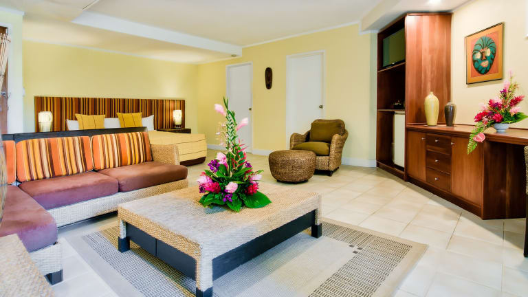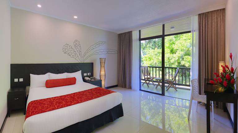 Die Zimmer im Tanoa International Hotel bieten einen eigenen Balkon mit Blick auf die tropischen Gärten. Jedes Zimmer ist mit einem Flachbild-Kabel-TV, Klimaanlage und einem Kühlschrank ausgestattet. Vom Balkon aus können Sie den Blick auf den Garten oder die Berge genießen.