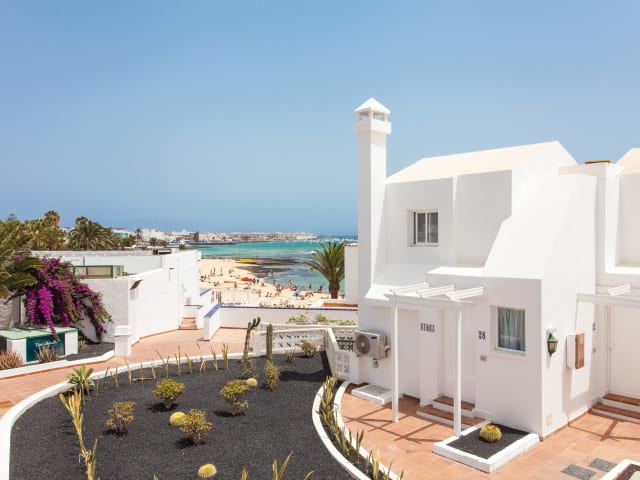Die Tao Caleta Playa Apartments bieten die beste Lage: direkt am Strand mit direktem Zugang zum Strand und herrlichem Blick auf die Insel „Isla de Lobos“. Das Stadtzentrum mit zahlreichen Supermärkten, Aktivitäten, Unterhaltungsmöglichkeiten, gastronomischen Einrichtungen und Einkaufsmöglichkeiten liegt nur 200 m entfernt. Unser Vorschlag ist eine Einladung für Sie, mit dem Meer als Hintergrundgeräusch zu träumen und Ihre Füße gleich nach dem Aufwachen in den Sand zu tauchen. Diese Unterkunft verfügt über einen Außenpool für Erwachsene und einen kleineren für Kinder inmitten eines großen Solariums, in dem sich unsere Besucher entspannen können. Die Wohnungen verteilen sich auf drei verschiedene Bereiche. Das erste Apartment umfasst 18 zweistöckige Apartments mit Poolblick. Die untere Ebene verfügt über eine Wohnküche, eine kleine Toilette und eine Terrasse. Das Obergeschoss hat das Schlafzimmer und ein komplettes Badezimmer. Im zweiten Bereich befinden sich fünf zweistöckige Apartments mit Innenansicht sowie fünf weitere zweistöckige Apartments mit Meerblick. Alle haben Terrasse, Wohnküche, Bad und ein Schlafzimmer mit Balkon. Der dritte Bereich besteht aus neun 2-Zimmer-Wohnungen und einer 3-Zimmer-Wohnung in einem 2-stöckigen Gebäude mit 2 Wohneinheiten im Erdgeschoss und 8 im Obergeschoss. Jedes bietet eine Wohnküche und ein Badezimmer. Einige Unterkünfte verfügen über einen kleinen Innenhof, andere über eine größere Terrasse. Alle bieten einen atemberaubenden Blick auf die Bucht von Corralejo mit der Insel „Isla de Lobos“ und Lanzarote im Hintergrund.