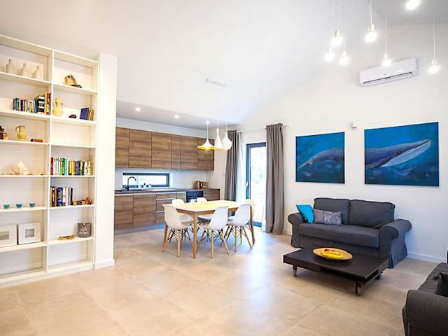Die Villa bietet Platz für bis zu vier Personen und umfasst zwei Schlafzimmer, ein Wohnzimmer und eine voll ausgestattete Küche mit Kühlschrank und Kaffeemaschine. Die beiden Badezimmer sind mit einer Dusche und einem Haartrockner ausgestattet. Handtücher und Bettwäsche werden bereitgestellt. Zu den weiteren Annehmlichkeiten gehören Klimaanlage und ein Zugang mit Schlüssel.