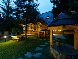 Das Domki Tatra House in Zakopane bietet stilvolle und gemütliche Chalets in einer ruhigen Gegend. Die Unterkünfte sind im regionalen Stil gestaltet und verfügen über Holzmöbel mit geschnitzten Elementen. Jedes Chalet bietet einen Flachbild-TV, ein Badezimmer mit Haartrockner und einen gemütlichen Sitzbereich mit Kamin. Die Küchenzeile ist gut ausgestattet und im Garten können Sie grillen und entspannen. Für Kinder gibt es einen Spielplatz und auch Fahrräder stehen kostenlos zur Verfügung. Die Lage des Domki Tatra House ist ideal, nur 3 km von der beliebten Krupówki-Straße und 400 m vom Skilift Krzeptówki II entfernt.