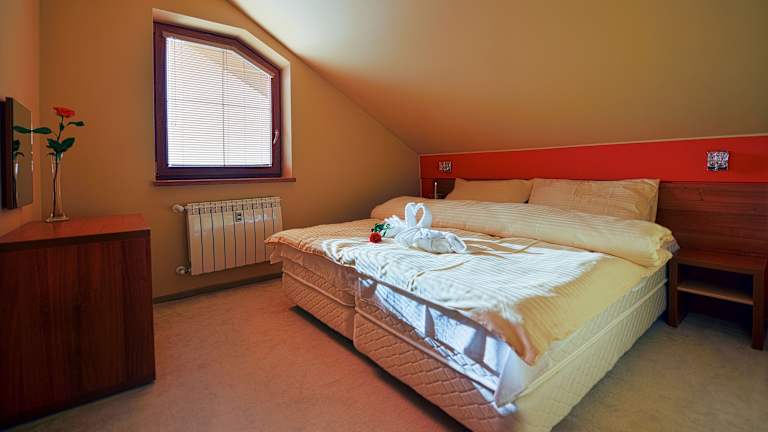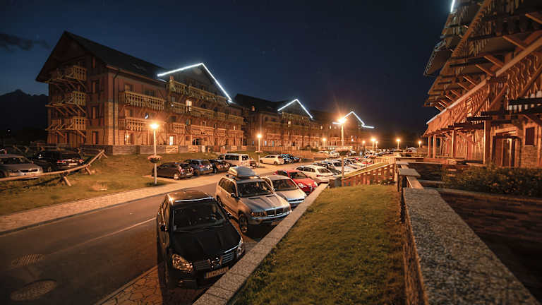 Im Resort befindet sich ein Restaurant, das traditionelle slowakische Gerichte und internationale Speisen serviert. Hier können Sie köstliche Mahlzeiten genießen und den Tag gemütlich ausklingen lassen. Gegen Aufpreis können Sie auch den privaten VIP-Wellnessbereich mit Sauna, Whirlpool und Massageanwendungen nutzen.