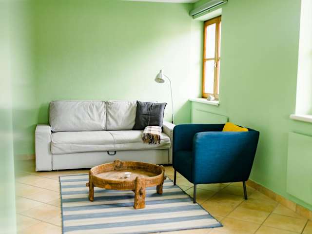 Das Tauglerei Appartement Malve bietet ein komfortables Schlafzimmer und ein gemütliches Wohnzimmer, in dem Sie sich entspannen können. Die voll ausgestattete Küche verfügt über alle notwendigen Annehmlichkeiten wie einen Kühlschrank und eine Kaffeemaschine, um Ihre eigenen Mahlzeiten zuzubereiten. Im Badezimmer finden Sie eine Badewanne und einen Haartrockner. Handtücher und Bettwäsche werden im Apartment gestellt, um Ihnen einen angenehmen Aufenthalt zu garantieren.