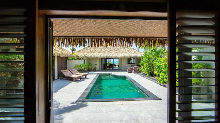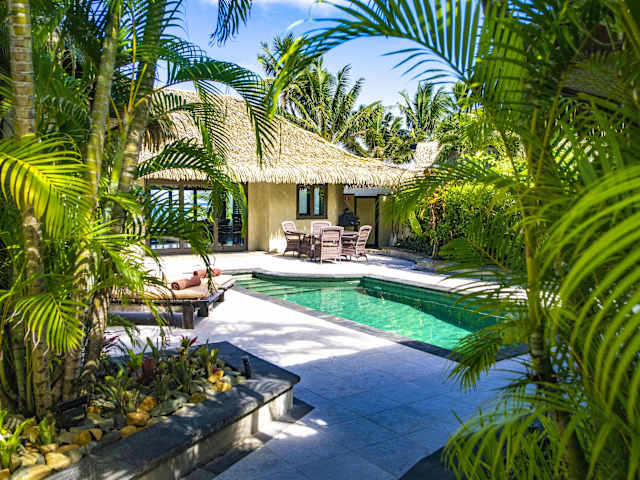 Das Rumours Luxury Villas & Spa in Rarotonga bietet luxuriöse Villen mit eigenem Pool und direktem Zugang zum Strand. Hier können Sie sich entspannen, den Privatstrand genießen und im Spa- und Wellnesscenter verwöhnen lassen. Das Hotel bietet auch einen persönlichen Flughafentransfer und einen kostenlosen Geschenkkorb mit Champagner bei der Ankunft. Die Villen sind gut ausgestattet und verfügen über einen eigenen Pool und eine Terrasse, auf der Sie die herrliche Aussicht auf die Lagune genießen können.