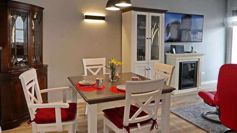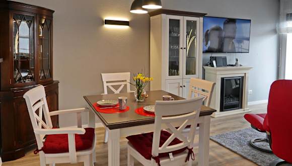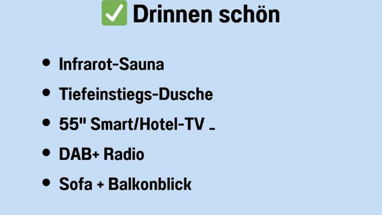 Die Ferienwohnung umfasst ein Schlafzimmer, ein Wohnzimmer sowie ein Badezimmer mit einer Dusche. Ein Flachbild-TV ist ebenfalls vorhanden.