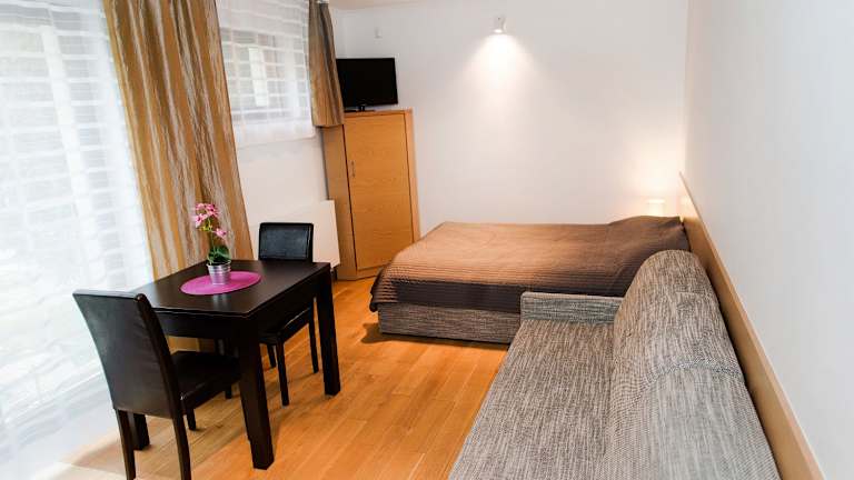 Das Institut bietet modern eingerichtete Apartments in einem zeitgemäßen Apartmentkomplex. Die Apartments sind hell und farbenfroh dekoriert, mit Flachbild-TV, Sofa sowie einer voll ausgestatteten Küchenzeile. Ein Bad mit Dusche ist ebenfalls vorhanden.