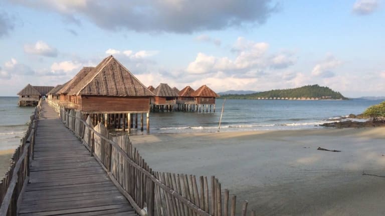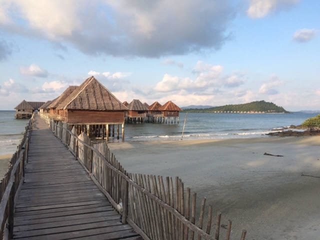 Es gibt ca. 15 Bungalows, die auf Stelzen im Wasser stehen.