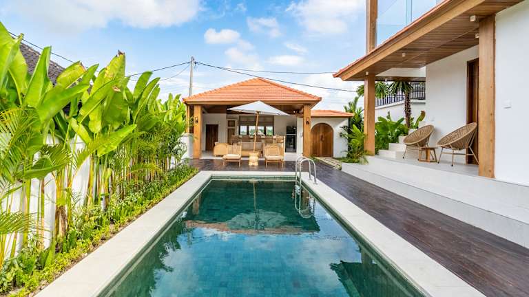 Die Villa ist klimatisiert und umfasst zwei Schlafzimmer, ein Wohnzimmer sowie eine voll ausgestattete Küche, die mit einem Kühlschrank und einem Wasserkocher ausgestattet ist. Es gibt zwei Badezimmer mit Dusche sowie kostenlosen Pflegeprodukten. Handtücher und Bettwäsche werden bereitgestellt. Darüber hinaus ist die Villa mit einem eigenen Pool ausgestattet.