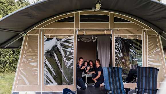 Die Unterkunft bietet eine Zelt-Lodge auf einem Campingplatz. Zu den Annehmlichkeiten gehören ein Außenpool und eine Terrasse.