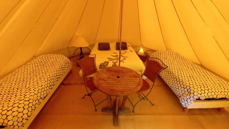 Die Tente insolite en pleine nature ist eine Zelt-Lodge, die von einem privaten Gastgeber geführt wird. Diese Unterkunft bietet Gartenblick und bietet Platz für Familien. Es handelt sich um eine Nichtraucherunterkunft, in der keine Haustiere gestattet sind. Ein Mindestalter von 18 Jahren ist für den Check-in erforderlich, während für Gäste kein Mindestalter besteht. Die Unterkunft führt strenge Hygiene- und Sicherheitsmaßnahmen durch.