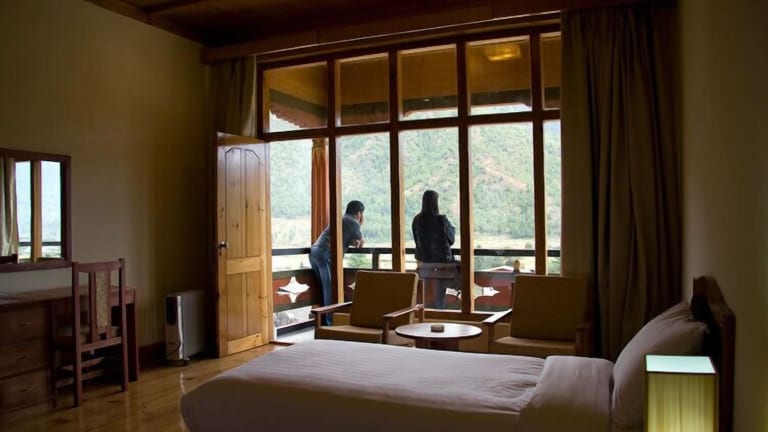 Das Hotel bietet einen schönen Blick auf die Hügel von Paro.