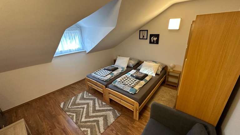 Die Unterkunft Termal Ferienhaus befindet sich in der Termál utca 4/3, circa 50 km vom Bahnhof Zalaszentiván Vasútállomás entfernt. Die Umgebung bietet einen Garten und liegt in der Nähe des Moravske Toplice Livada Golf Course, der 29 km entfernt ist.
