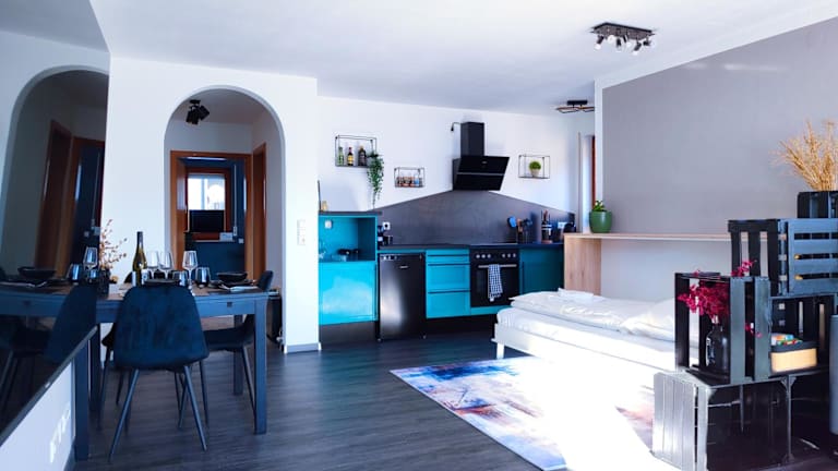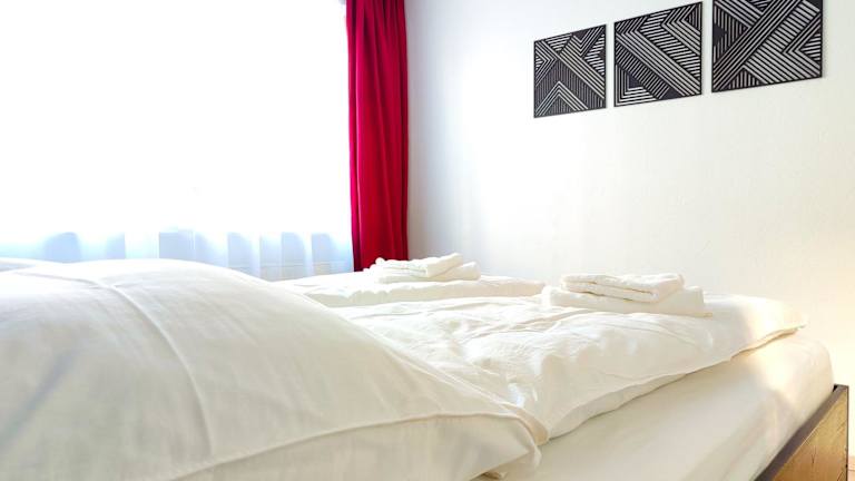 Die Ferienwohnung bietet ein Schlafzimmer, ein Wohnzimmer mit einem Flachbild-TV, eine gut ausgestattete Küche mit Kühlschrank und Geschirrspüler sowie ein Badezimmer mit Dusche. Handtücher und Bettwäsche werden bereitgestellt.