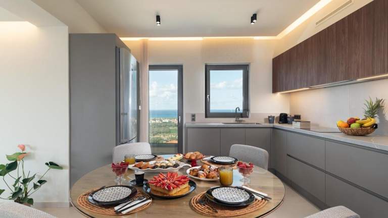 Die Villa verfügt über eine gut ausgestattete Küche mit einem Kühlschrank, einem Geschirrspüler und einem Ofen, jedoch keine spezifischen Informationen zu weiteren Verpflegungsmöglichkeiten.