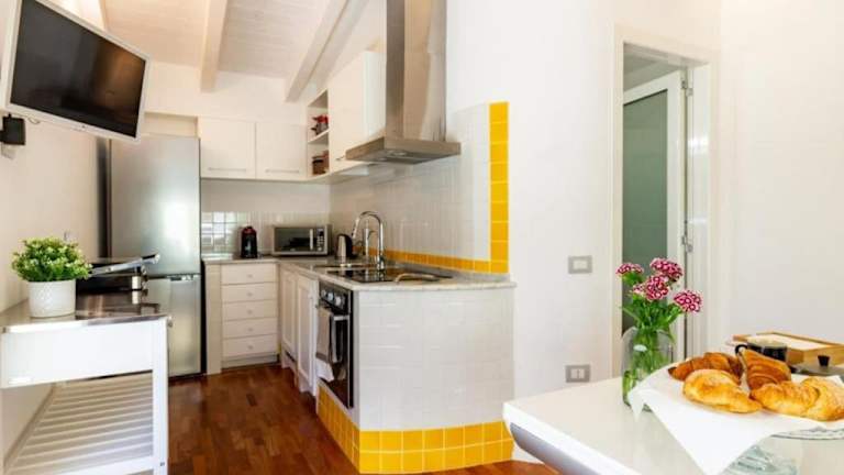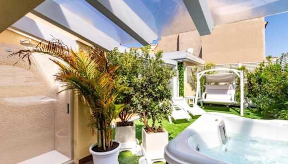 Die Wohnung besteht aus einem Schlafzimmer, einem Wohnzimmer, einer voll ausgestatteten Küche mit Kühlschrank und Kaffeemaschine sowie einem Badezimmer mit Bidet und Dusche. Zur Ausstattung gehört zudem ein Flachbild-TV. Die Unterkunft bietet Klimaanlage und einen Whirlpool zur Benutzung durch die Gäste.