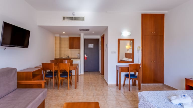 Das TETYK Hotel in Protaras bietet Ihnen einen komfortablen Aufenthalt mit kostenfreiem WLAN und einem erfrischenden Außenpool. Die Studios und Apartments verfügen über eine voll ausgestattete Küchenzeile und einen eigenen Balkon. Entspannen Sie in der Sauna oder trainieren Sie im Fitnesscenter. Genießen Sie köstliche Mahlzeiten im hoteleigenen Restaurant und erfrischende Getränke an der Bar. Der Strand Kalamies und der Nationalpark Kavo Gkreko sind nur wenige Kilometer entfernt und laden zu spannenden Ausflügen ein.