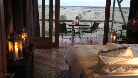 Die Teufelskrallen Lodge liegt am Rande eines 4.000 ha großen privaten Naturschutzgebiets, auf einer der westlichsten Kalahari-Dünen. Die 6 Zelthäuser auf Stelzen mit großer Aussichtsterrasse bieten einen atemberaubenden Ausblick in die beeindruckende Kalahari-Landschaft, von roten Dünen und Kameldornbäumen geprägt. Die Lage an der Kreuzung B1 / C21 garantiert eine hervorragende Erreichbarkeit - auch ohne allradgetriebenes Fahrzeug