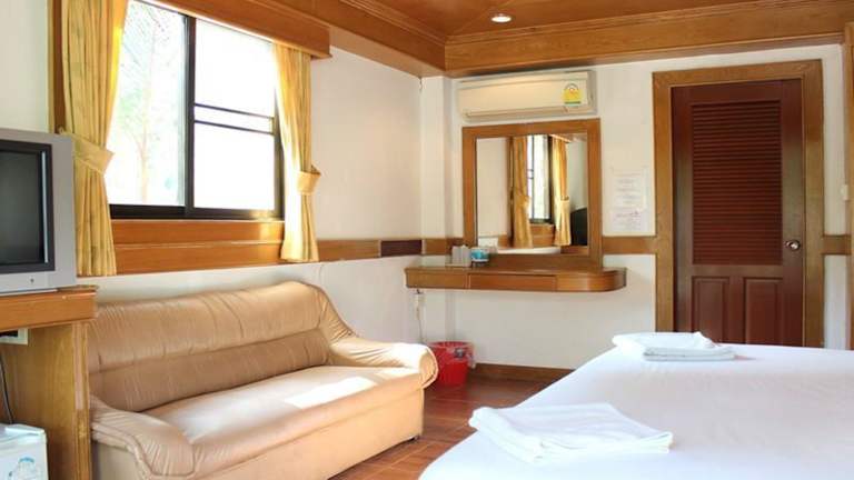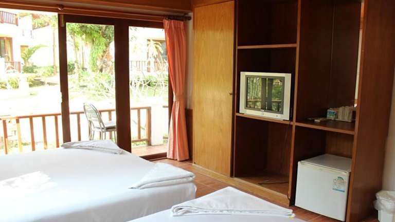 Die Zimmer im Koh Chang Thai Garden Hill Resort sind komfortabel und gemütlich eingerichtet. Sie verfügen über raumhohe Fenster, die viel Tageslicht hereinlassen, sowie einen Kühlschrank für Ihre persönlichen Bedürfnisse. Die klimatisierten Zimmer sorgen für angenehme Temperaturen, und im eigenen Bad finden Sie eine Warmwasserdusche.