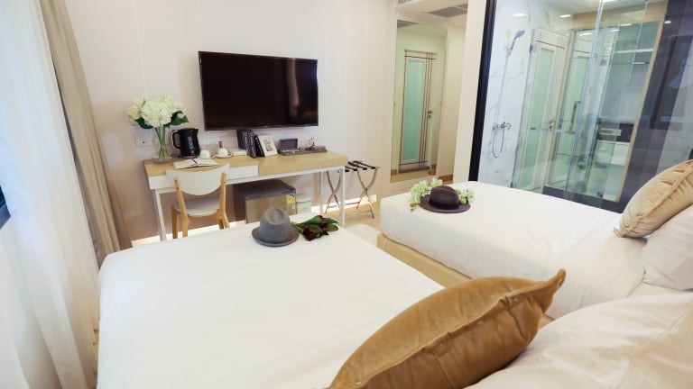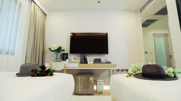 Das Thaisun Bangkok Hotel verfügt über 60 klimatisierte Zimmer, die alle mit einem Flachbildfernseher und kostenlosem WLAN ausgestattet sind. Die Zimmer sind geräumig und komfortabel und bieten ein offenes Badezimmer mit Dusche sowie kostenlose Toilettenartikel und einen Haartrockner. Ein Safe und ein Schreibtisch sind ebenfalls vorhanden. Die Zimmer werden täglich gereinigt, um einen angenehmen Aufenthalt zu gewährleisten.