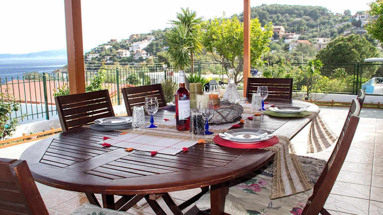 Die Umgebung des Thalassa in Perani bietet viele Möglichkeiten für Sport- und Freizeitaktivitäten. Sie können die Gegend beim Wandern oder Radfahren erkunden und die schöne Natur genießen. Für Wassersportliebhaber gibt es die Möglichkeit zum Angeln und Schnorcheln. Nach einem aktiven Tag können Sie im Garten oder auf der Terrasse des Ferienhauses entspannen und den Meerblick genießen.