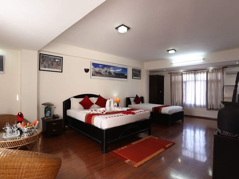 Die Zimmer im Thamel Eco Resort sind klimatisiert und verfügen über Parkettböden. Sie sind einfach eingerichtet und bieten Annehmlichkeiten wie einen Kleiderschrank, Kabel-TV, ein Telefon und einen Sitzbereich. Jedes Zimmer verfügt über ein eigenes Badezimmer mit Dusche.