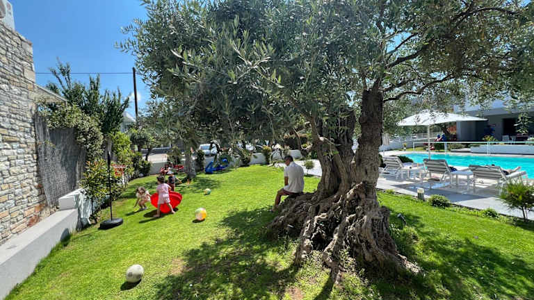 Das Thassos OLIVIA RESORT bietet Übernachtungsmöglichkeiten mit kostenlosem WLAN, Klimaanlage und Zugang zu einem Garten mit einem saisonalen Außenpool. Zu den Einrichtungen gehören eine Terrasse mit Bergblick, ein Grill und ein Whirlpool. Die Unterkunft ist eine Nichtraucherunterkunft, die speziell für Familien geeignet ist und einen Privatparkplatz sowie einen Express-Check-in/-out-Service bereitstellt. Es gibt auch Sicherheitsvorkehrungen wie Videoüberwachung in Gemeinschaftsbereichen und Rauchmelder.