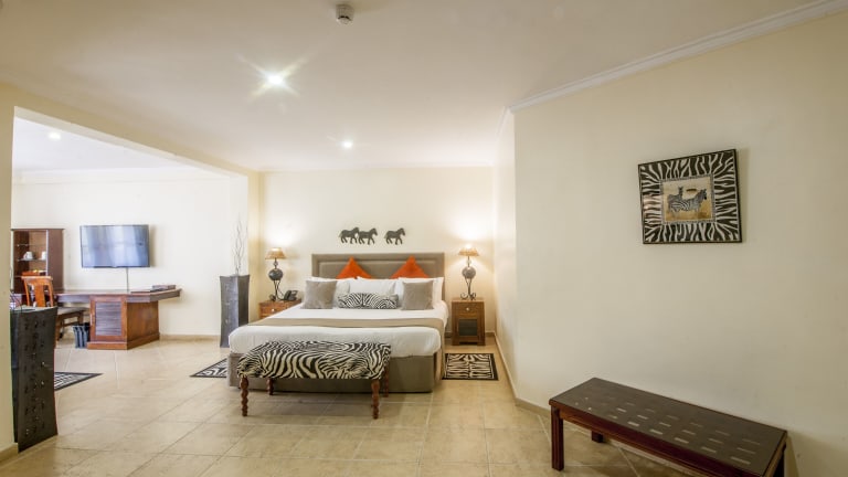 Die Zimmer im African Tulip sind klimatisiert und bieten modernen Komfort für einen angenehmen Aufenthalt. Jedes Zimmer verfügt über einen Flachbild-Sat-TV, einen Kühlschrank, einen Wasserkocher und eine Badewanne. Kostenfreie Pflegeprodukte und ein Schreibtisch sind ebenfalls vorhanden. Die Zimmer sind geschmackvoll eingerichtet und bieten einen erholsamen Rückzugsort nach einem ereignisreichen Tag. Bettwäsche und Handtücher werden gestellt.