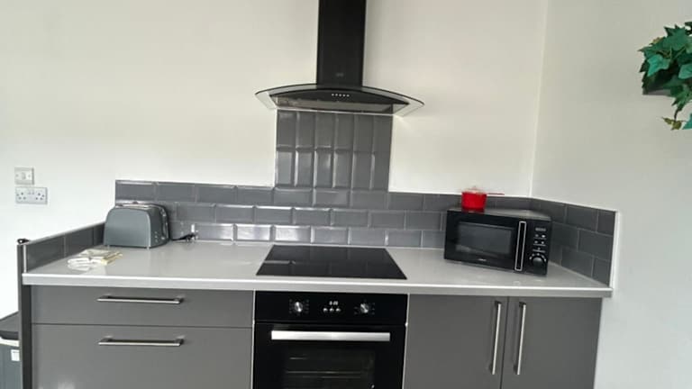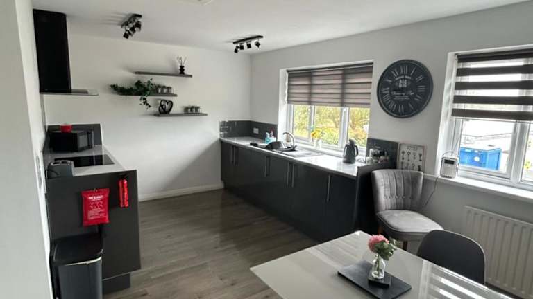Die Ferienwohnung umfasst ein Schlafzimmer, ein Wohnzimmer und eine voll ausgestattete Küche, die mit einem Kühlschrank und einem Wasserkocher ausgestattet ist. Zudem gibt es ein Badezimmer mit Dusche und Haartrockner. Handtücher und Bettwäsche werden bereitgestellt.