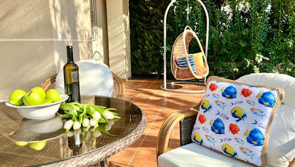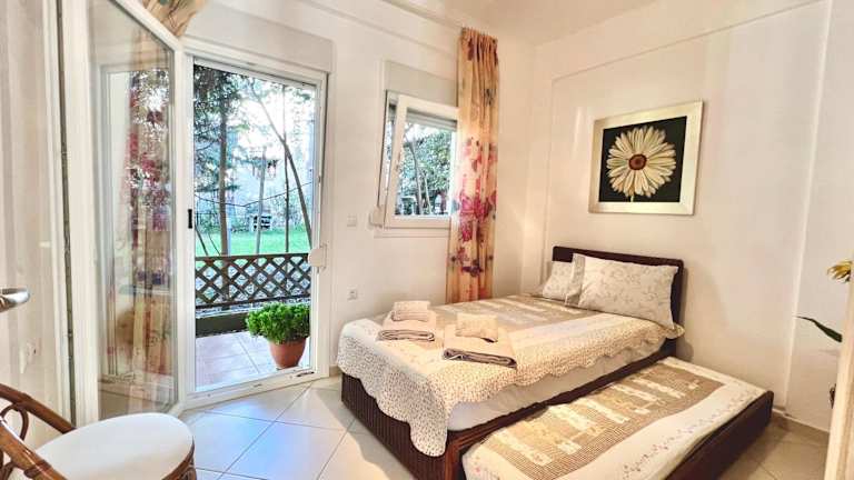 Die The Almond Tree Villa in Nikiti bietet eine komfortable Unterkunft mit einem Garten und einer Terrasse. Die Villa verfügt über 2 Schlafzimmer, eine gut ausgestattete Küche und ein Badezimmer. WLAN und Privatparkplätze stehen den Gästen kostenlos zur Verfügung. Die Lage der Villa ist ideal, nur wenige Gehminuten vom Strand Nikiti entfernt. Ein Fahrradverleih ist ebenfalls verfügbar, um die Umgebung zu erkunden. Der Flughafen Thessaloniki ist etwa 89 km entfernt.