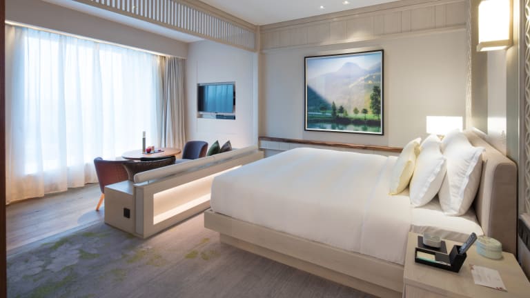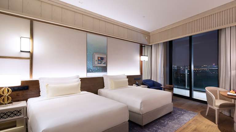 Die 383 Zimmer des Anandi Hotel and Spa Shanghai bieten modernen Komfort und stilvolles Design. Jedes Zimmer verfügt über eine Minibar, ein Telefon, einen Fernseher, einen DVD-Player und WLAN. Die Badezimmer sind mit Duschen ausgestattet und es sind auch rollstuhlgerechte Zimmer verfügbar.