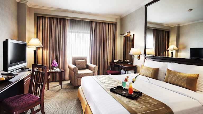Die klimatisierten Zimmer im Arnoma Hotel bieten einen herrlichen Blick auf Bangkok. Jedes Zimmer verfügt über Kabel-/Sat-TV, einen Safe, einen Kühlschrank und Tee- und Kaffeezubehör. Die Zimmer sind komfortabel und bieten alles, was Sie für einen angenehmen Aufenthalt benötigen.
